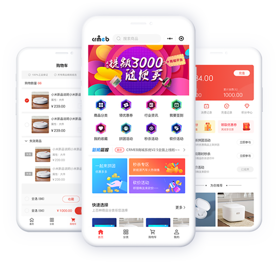 裂變紅包、分銷、秒殺、拼團、優(yōu)惠券、積分商城、訂單管理、附近門店、到店自提、核銷、會員等級、余額充值、商家入駐等……